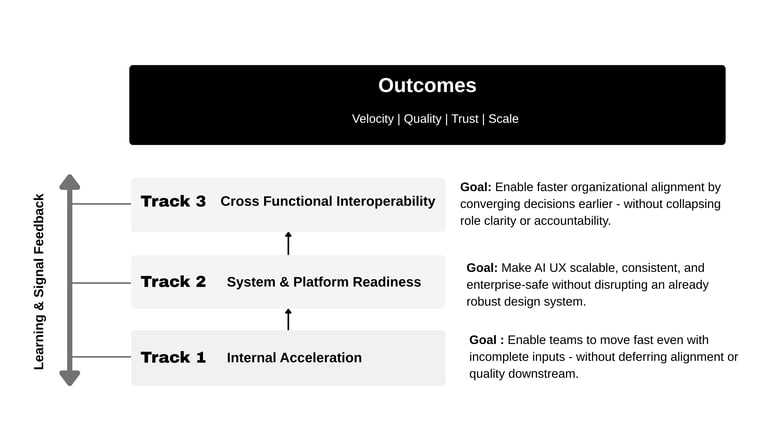 We re-framed AI-first UX from a feature-led initiative into a system-level intervention. Rather than asking where AI could be added, we asked a harder question: what had to change in how work moved through the organization for AI to actually create leverage?